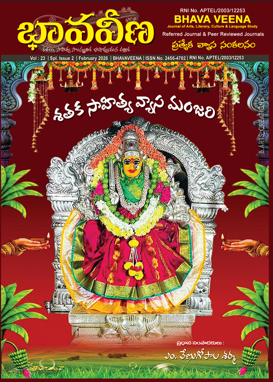 This document is a Special Edition of the journal Bhava Veena (భావ వీణ) (Vol. 19 - Issue. 4 - Spl. Edition - April 2022), published by Sri Krishnadevaraya University (SKU) in Ananthapuramu. It is a UGC CARE - Journal under the Arts and Humanities Category. Key Focus: The special edition is based on a two-day online national conference (జాతీయ సదస్సు) titled "The Predominance of Individuals, Systems, and Literature in the Construction of an Ideal Society" (ఆదర్శ సమాజ నిర్మాణంలో వ్యక్తులు, వ్యవస్థలు మరియు సాహిత్యం ప్రాధాన్యం). The conference was organized by the Centre for Study of Social Exclusion and Inclusive Policy (CSSEIP) of SKU on April 29 & 30, 2022. Editorial and Organizing Details: Journal Editor (Page 2): Kolla Sri Krishnarao Chief Editor (Page 2): Dr. Pitta Santhi Conference Chief Editor (Page 6): Prof. M. Muninarayanappa (Director, CSSEIP) SKU Officials: Vice-Chancellor (ఉప కులపతి): Acharya Machireddy Ramakrishna Reddy Rector (రెక్టార్): Acharya A. Mallikarjuna Reddy Registrar (రిజిస్ట్రార్): Acharya A. Krishna Kumari Themes and Perspectives: The national seminar sought to record the contributions of individuals, political, social, economic, and legal systems, and literature towards achieving an ideal society and eliminating various inequalities. Key speakers and articles discussed the challenges in realizing an ideal society, citing issues like inequality, unemployment, and the caste system in India. The journal includes 46 articles, with titles addressing the role of literature, social sciences, and figures like Mahatma Gandhi, Vemana, and Gurajada Apparao in constructing an ideal society.